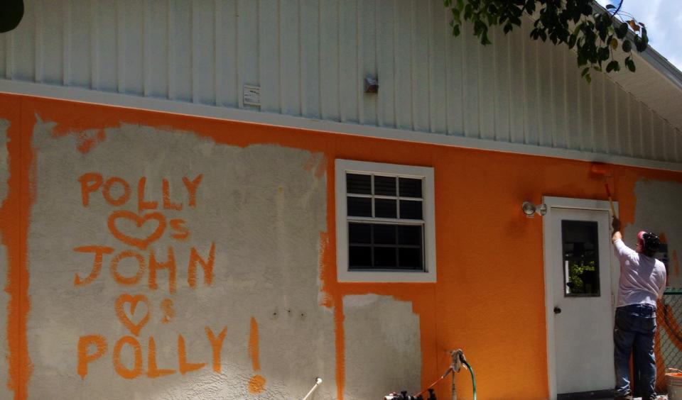 I missed Polly last night.  I thought she would bring her mom last night to the “open” meeting, but she wasn’t there.  Now I know why!  The two sides of John and Polly: