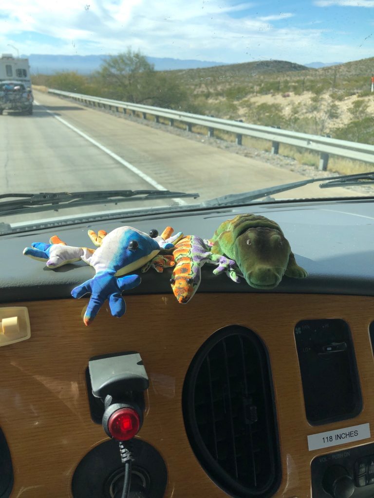 So I’ll leave you with this. I got a comment from my friend Bill about Otis having two buddies on the dash with him on this trip. I commented back that I hadn’t figured out their names yet, but would at some point. So let me introduce you to: