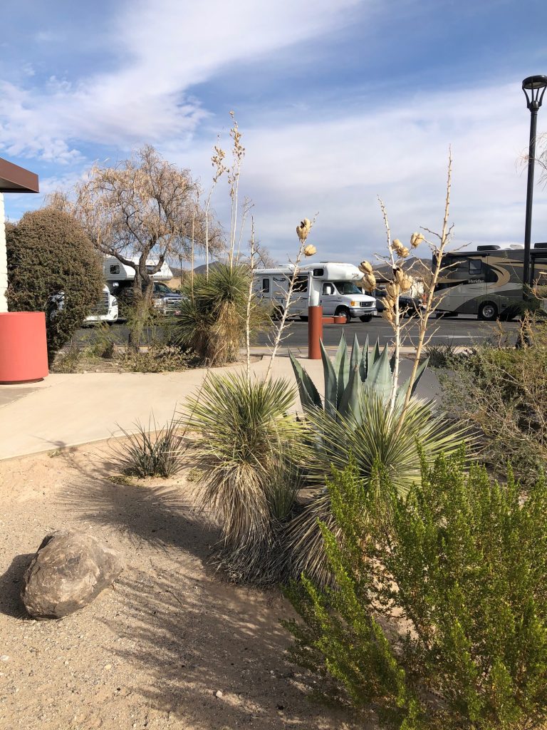 So this is how our life has gone. We’ve had beautiful weather the entire trip. We get to New Mexico at the LoW-Hi RV Ranch in Deming, NM and we’re sitting outside after we have plugged in for the night and it starts to drizzle a little. Then all of a sudden the wind picks up and the rain beats down and blows around really hard. Bill and Cathy are in their rig and I’m in mine. Daisy didn’t feel a thing – just the sound of the rain which is really cool! Anyway, my point is, this storm could have hit us ON THE ROAD, but it didn’t, it waited until we were settled! We are so BLESSED!