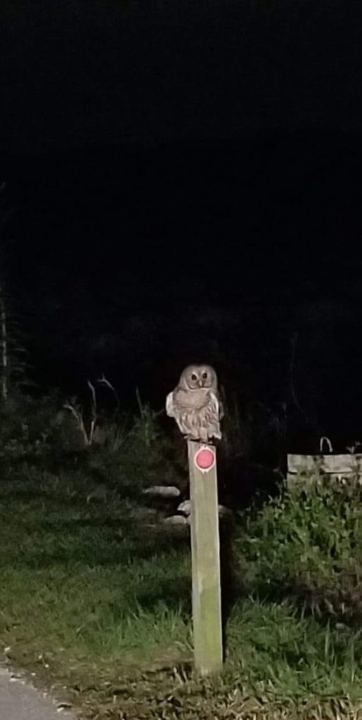 We’ve heard owls every time we’ve gone camping but never saw one. We drove up on this one & it sat forever (at least 10 minutes) without flying away! It was amazing! Suzan took this awesome picture with her phone! Amazing!