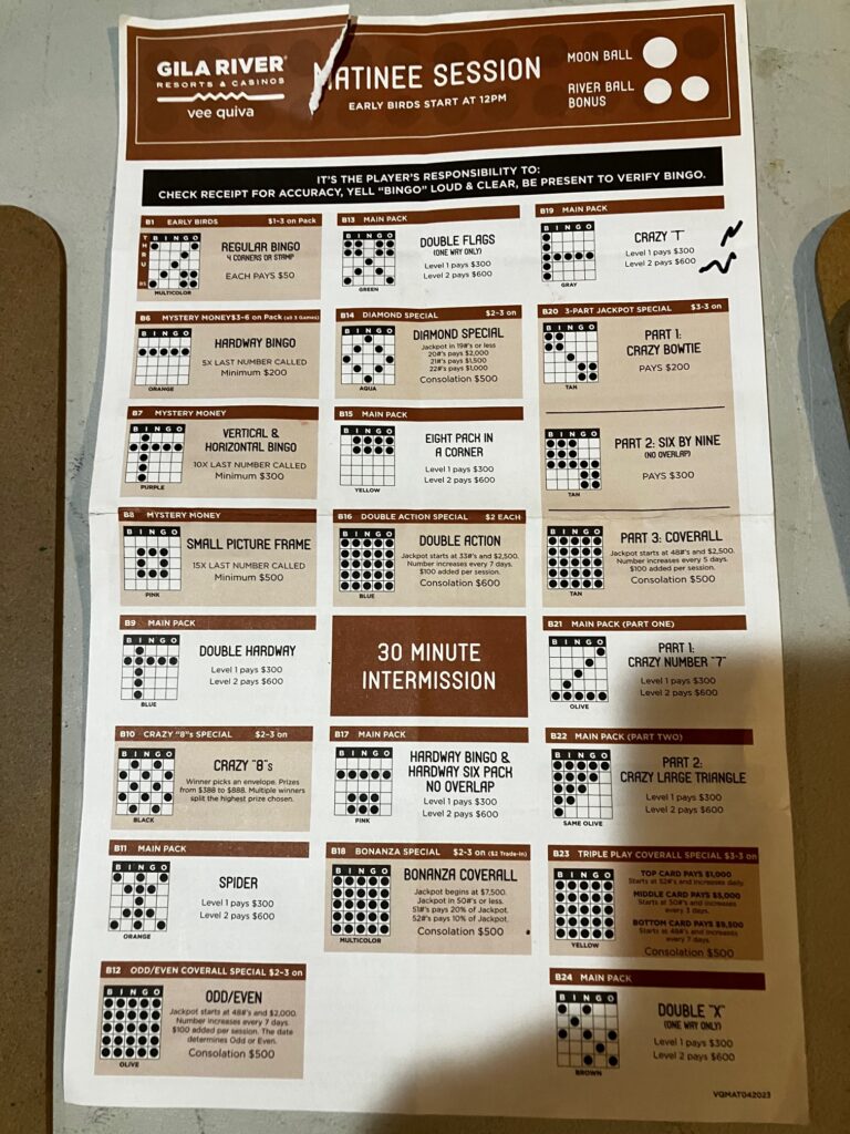 I took a picture of types of BINGO games for the future: