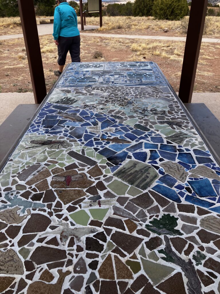 All of the picnic tables were done with mosaics. Really awesome! This was one of the views: