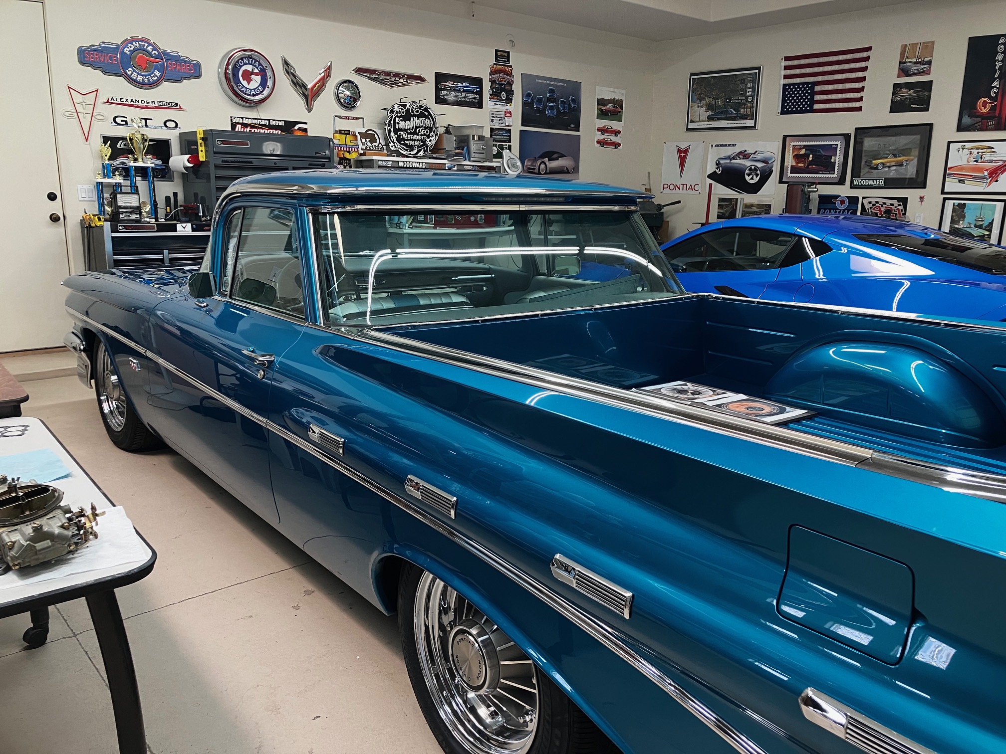 This is his friend Kenny’s shop in Tempe! The car in the center is “one of a kind”! He showed me the 3 cars he used to make it. The color isn’t quite right in this picture, but it was BEAUTIFUL!