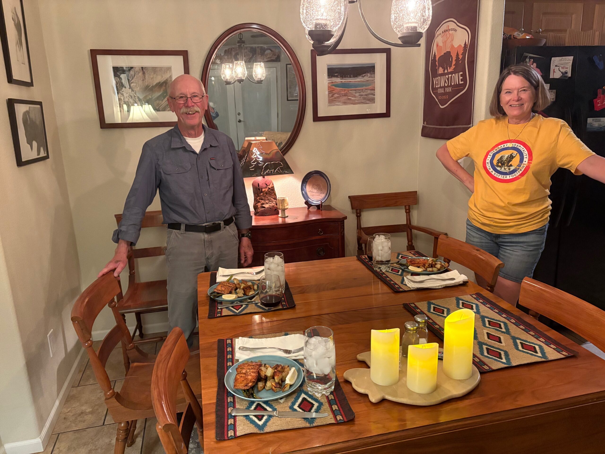 We hung out under their carport and just caught up. Their summer was great. A few mishaps but mostly a great summer. Cathy loves her job and Bill is just happy to be a 76 year old still working. It’s good for them! Bill cooked dinner on The Blackstone – he loves it and has a great time doing it: