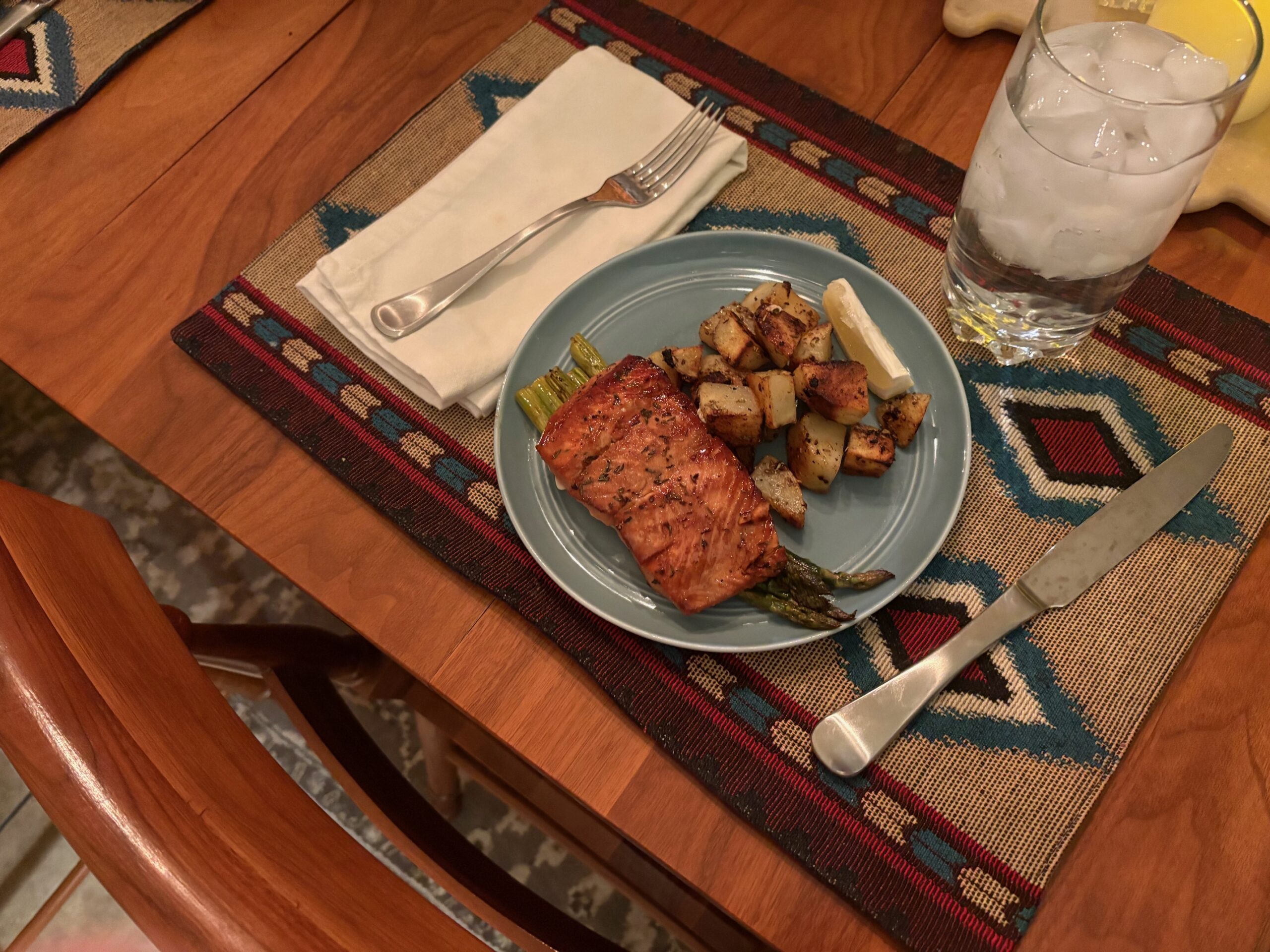 The most delicious dinner of Salmon, Asparagus and Potatoes all on the Blackstone!