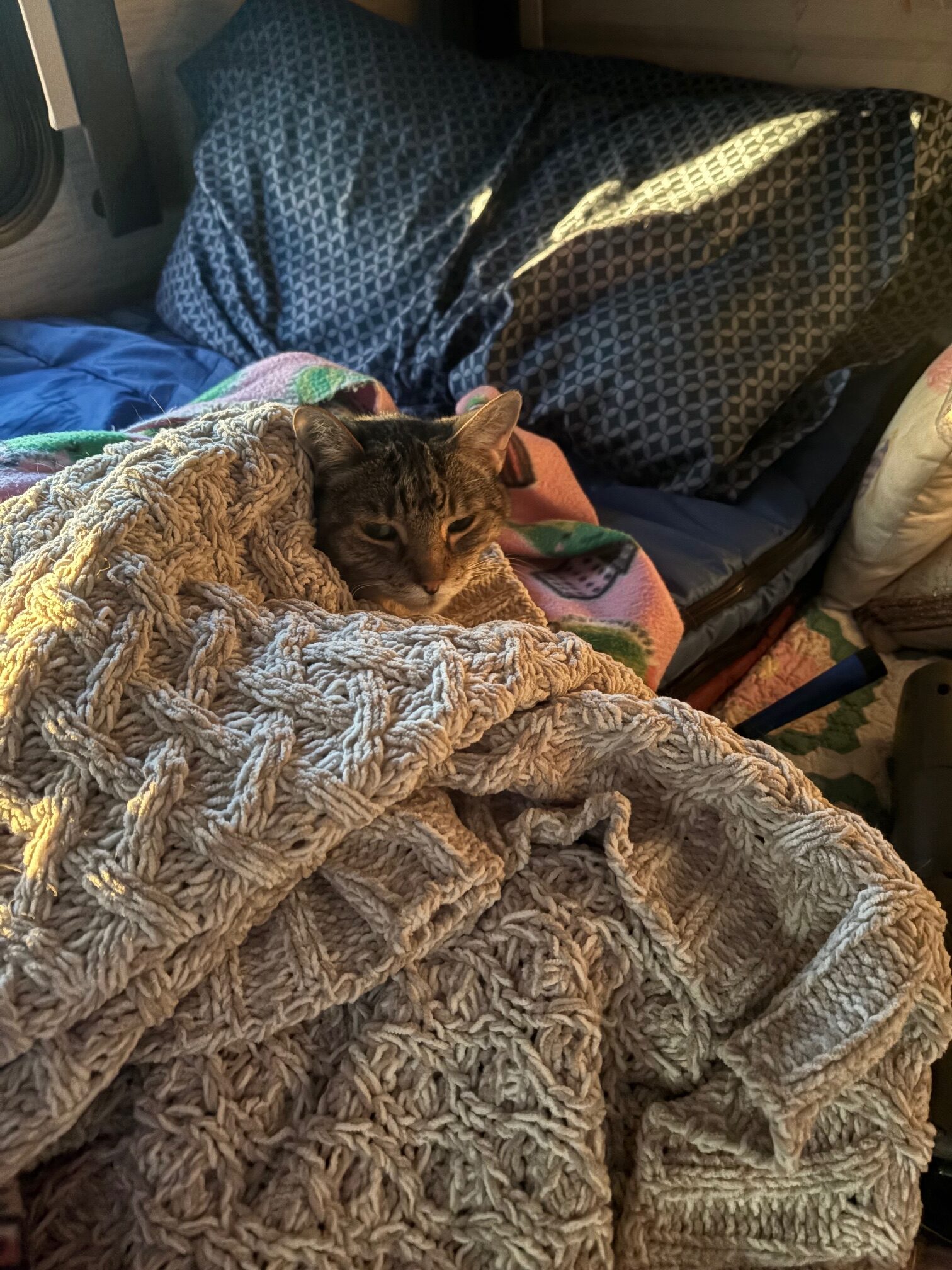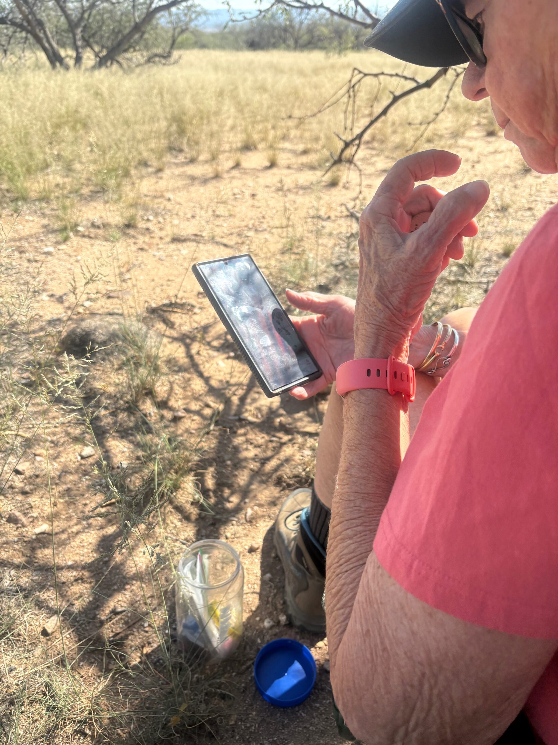 I’m looking forward to going to Bisbee today. I hope it doesn’t get too warm in the rig for Metaxa. I’ll close the blinds and open the windows. She should be fine! I decided NOT to go to Bisbee. I just want to chill with Metaxa! Instead of going to Bisbee, we looked for a Geocache and FOUND it!
