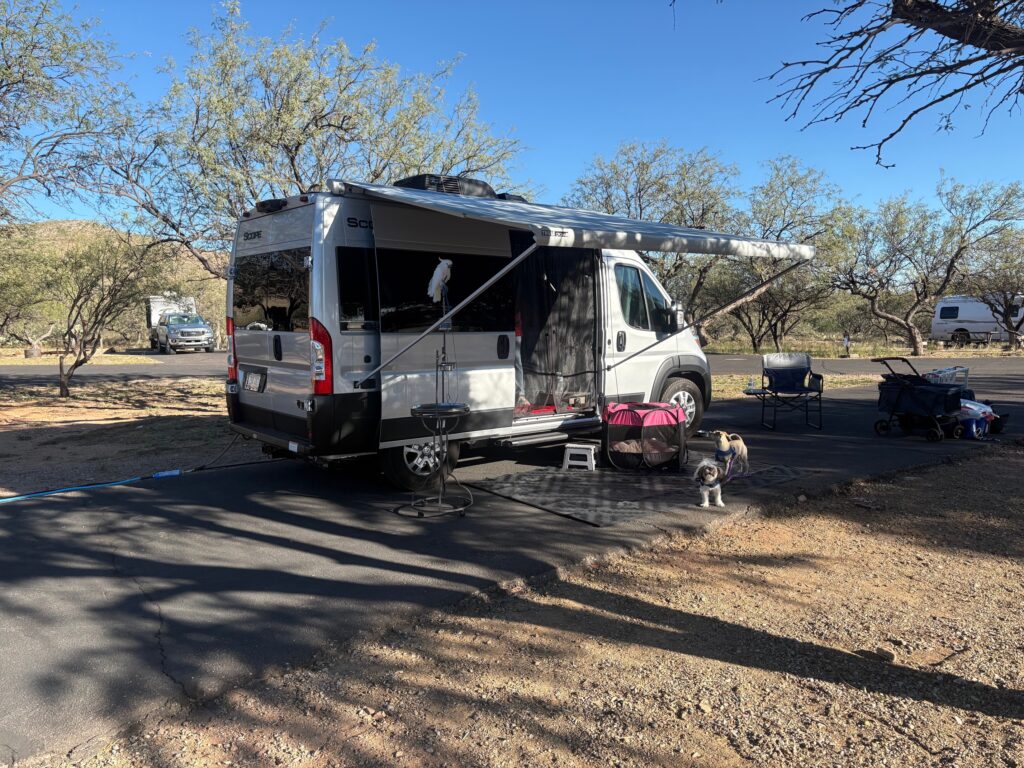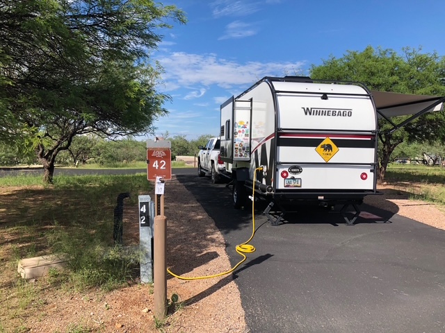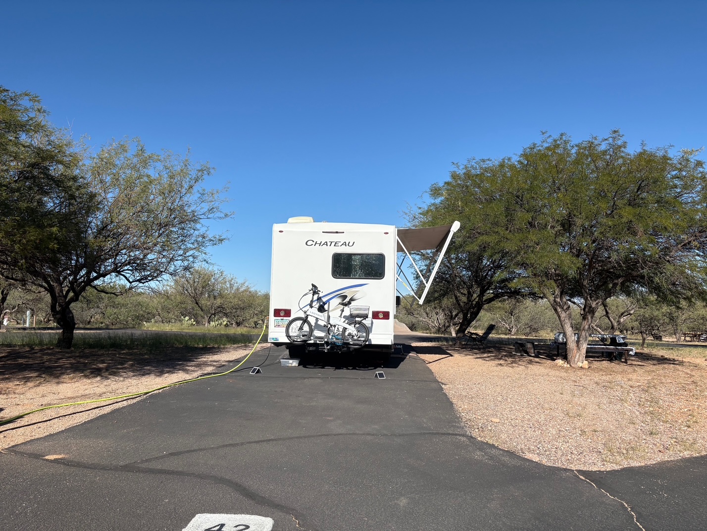 Got to Kartchner at 12:30, left at 9:30. Here is my first picture! I ate my salad in the overflow parking lot, but my site was available. I’m blogging at 2:30. Electric and water attached. Fans running. No need for A/C at this point. I love it here!