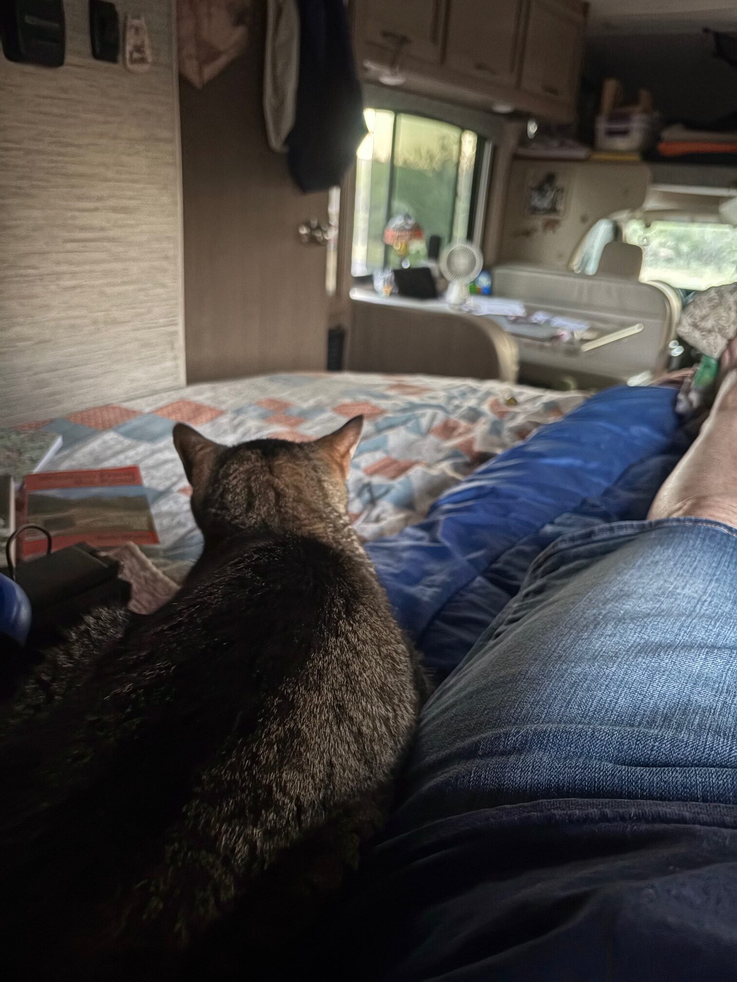 Metaxa is being so good. I really think she likes these little get aways. Here we are “resting”: She has awakened me numerous times two days in. I hope that changes as time goes on.
