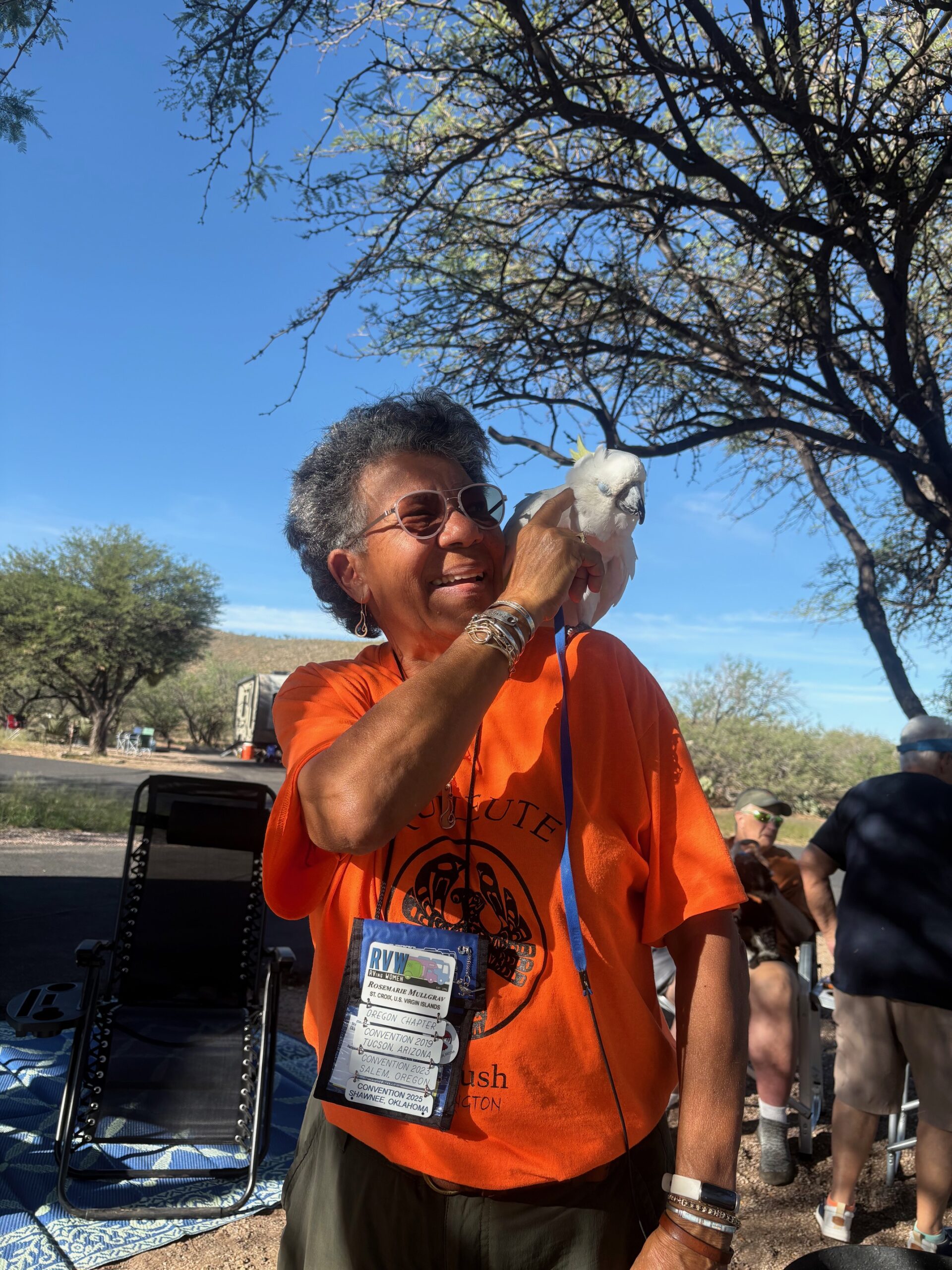 Met a new member yesterday, she is Patti Wilkinson – first time at a rally. Husband died so she travels with 2 dogs and a PARROT!!! She lives in Tucson near Catalina State Park.