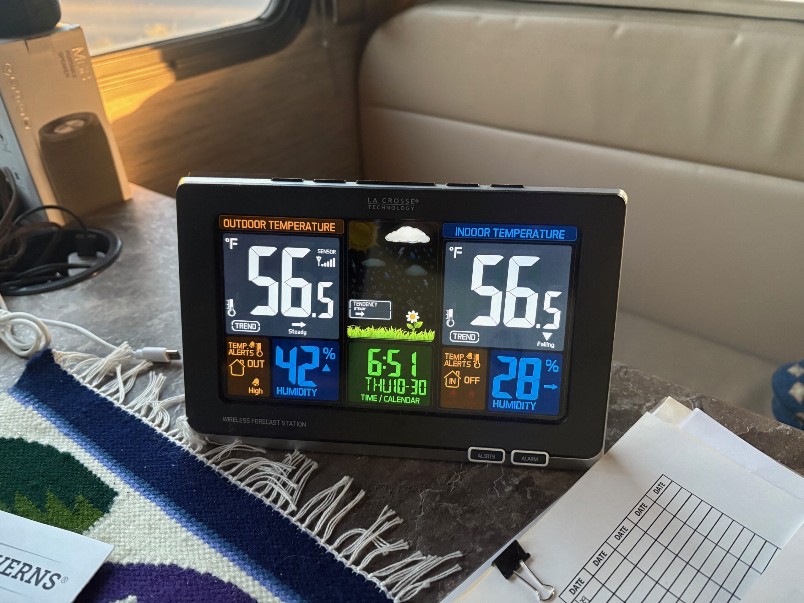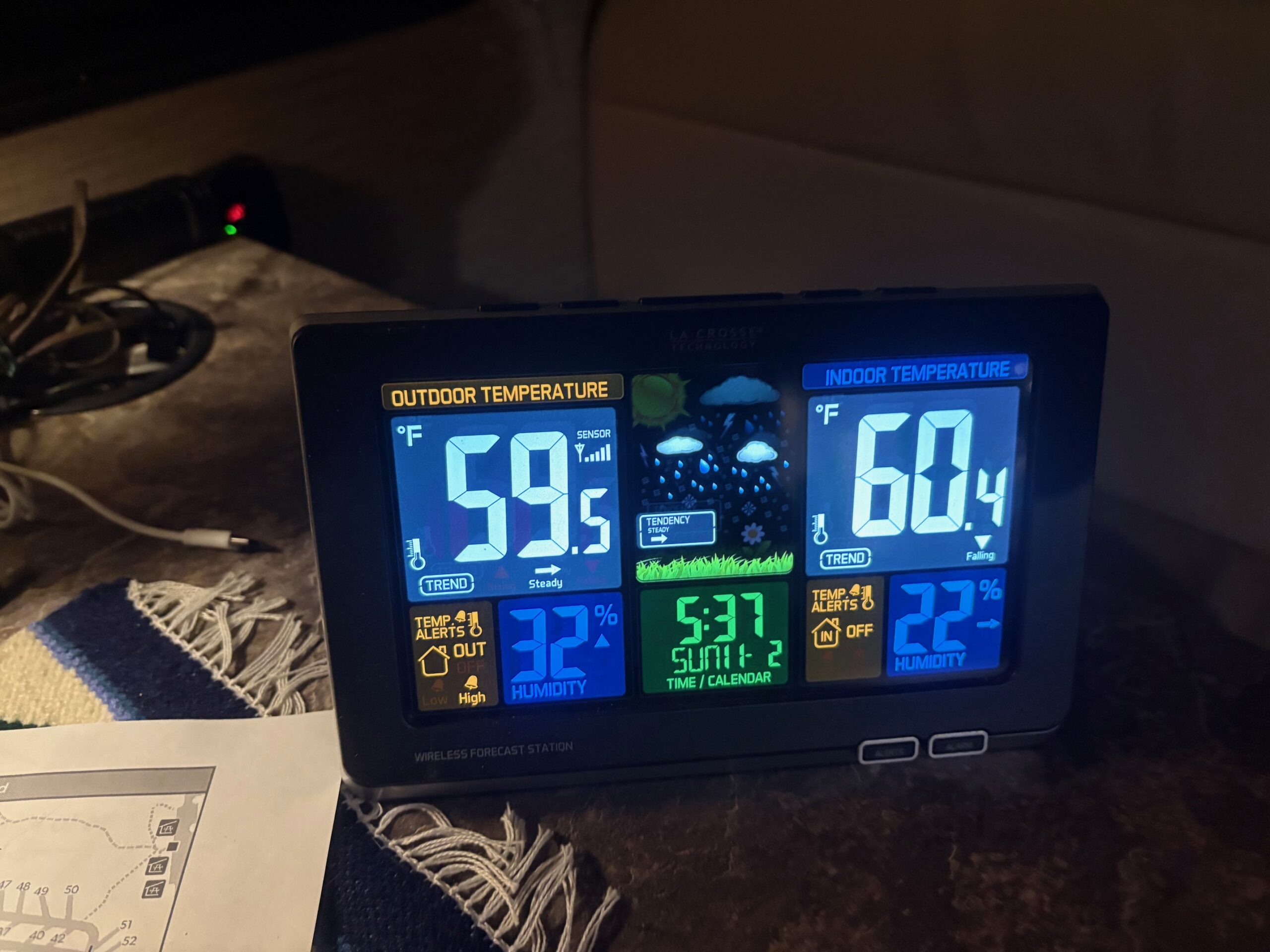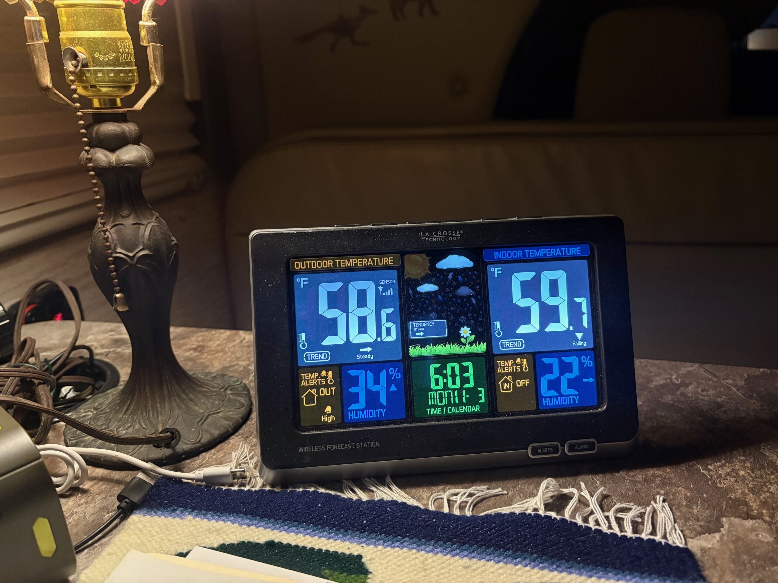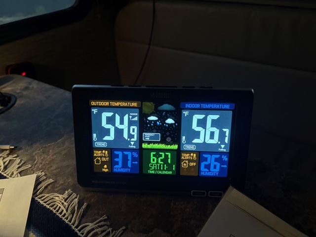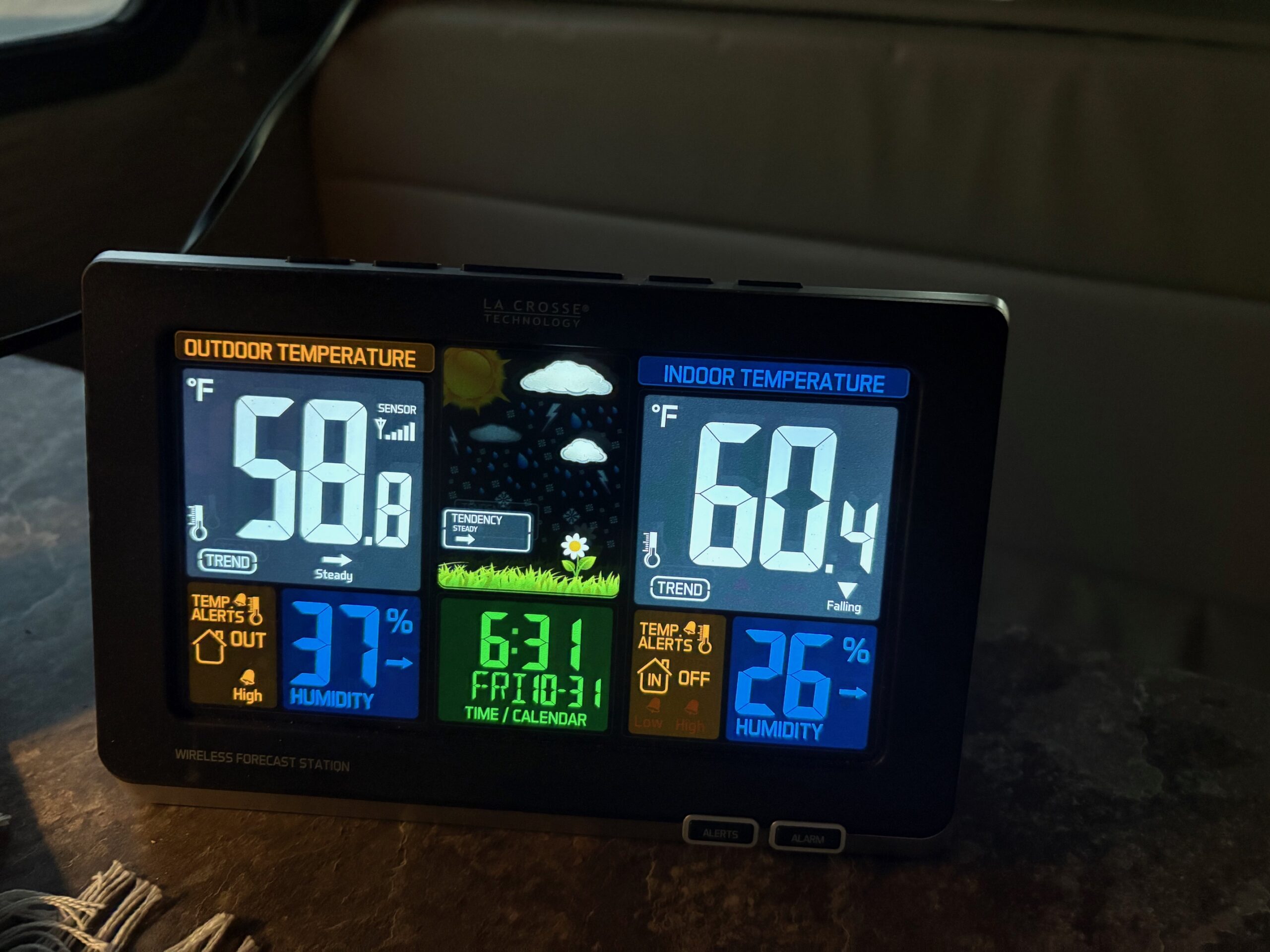 So today is Monday, November 3, 2025. I’m at Bill and Cathy’s waiting for them to get up so I can drink their coffee. I didn’t want to bring out all of my STUFF! Anyway these are the temps this morning: