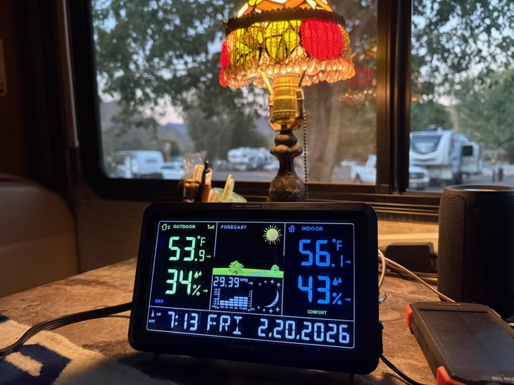 Last day at Cattail Cove – leaving this morning. Not sure when, but these are the temps this morning: