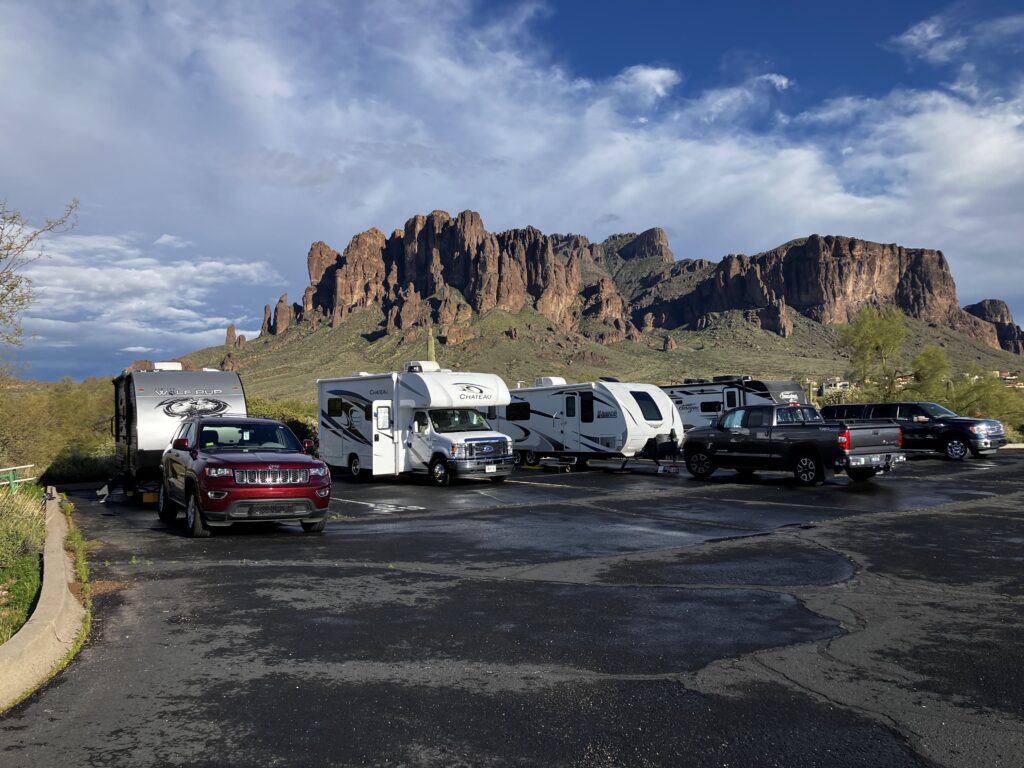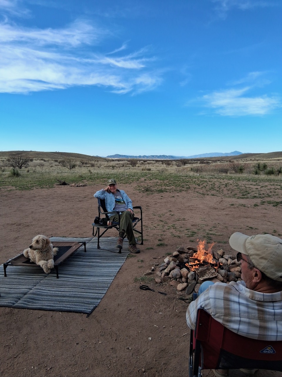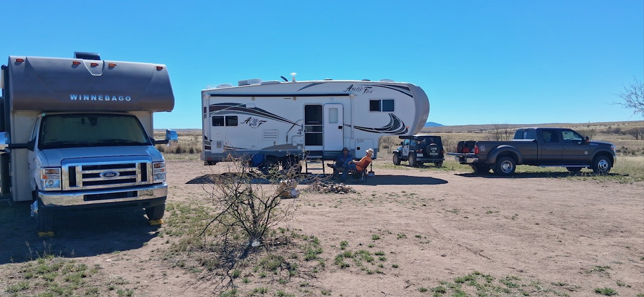 Bill, Cathy, Winston and Rich are boondocking 35 miles from home near Empire Ranch.  They found the spot while JEEPING.  I’m sorry I’m not doing that with them, but they are having fun.  They’ll be leaving at the end of March for YNP.  I’m trying to get a reservation to see them at Lake Pleasant at the end of the month.  They never called me back so I thought I’d try them again.  But in the meantime – here they are boondocking: