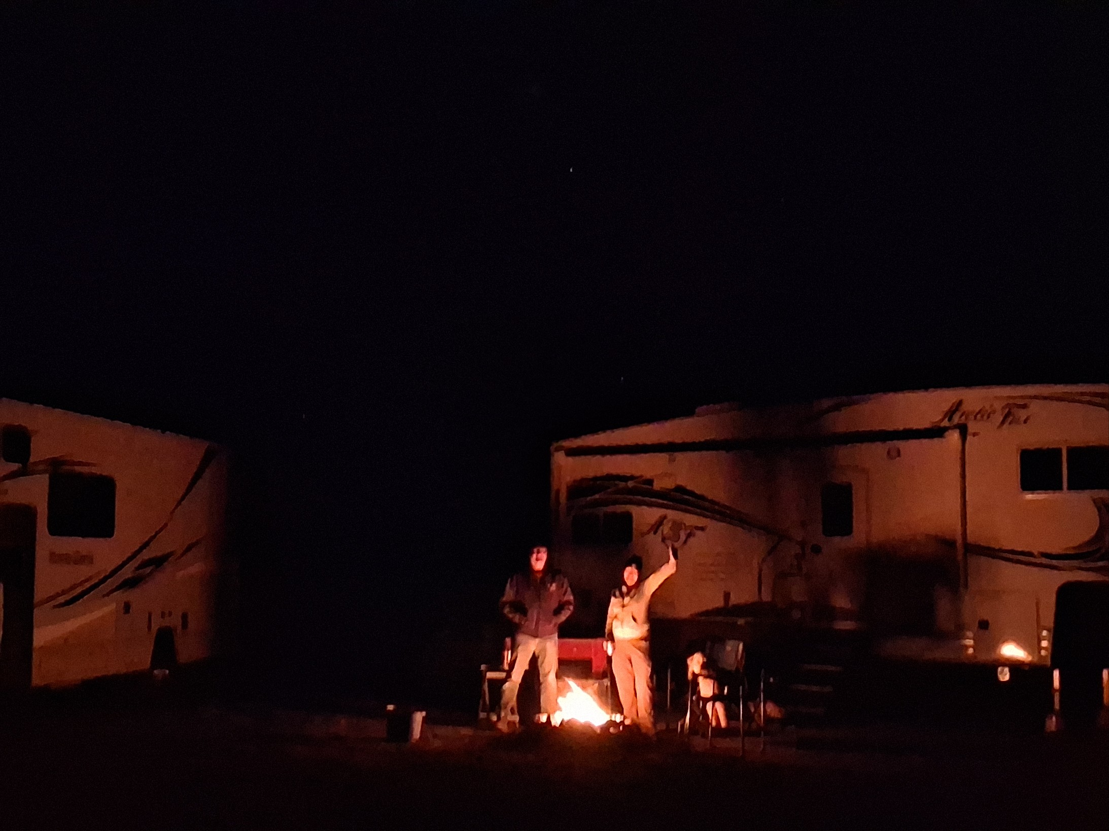 They are still boondocking – it was cold enough for a fire.  As opposed to our A/C going on yesterday!
