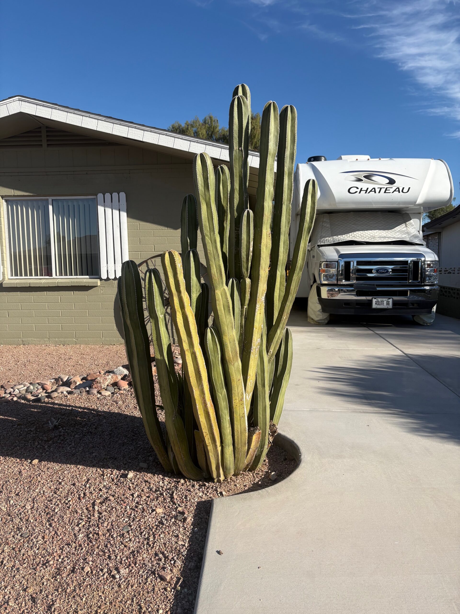 This is how our front yard cactus looks now – I believe it’s grown a bit since we moved in here.  Let me see if I can find another picture of it:
