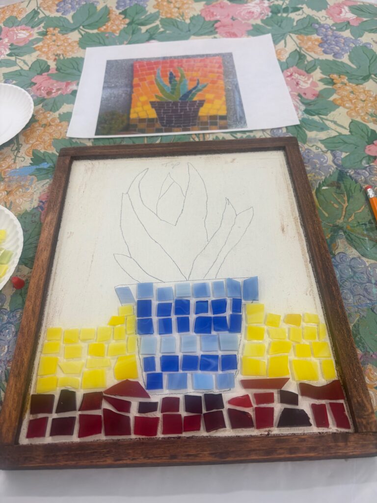 I went to an art class this morning, Saturday, March 7, 2026 at Read Hall.  It was for mosaics.  It was fun.  This is how it started: