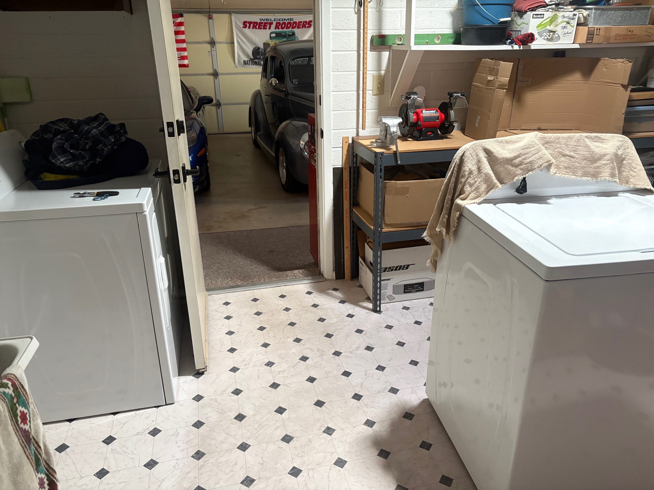 Here is the old washer waiting to be removed: