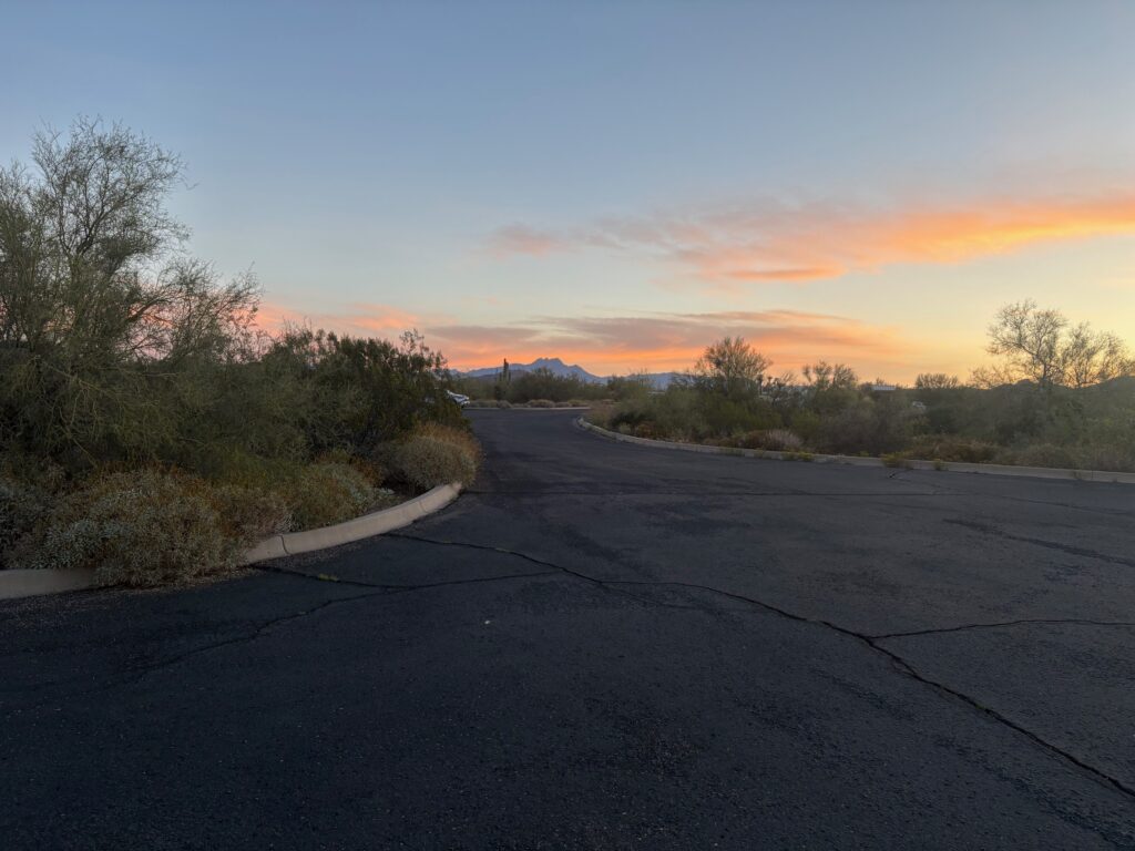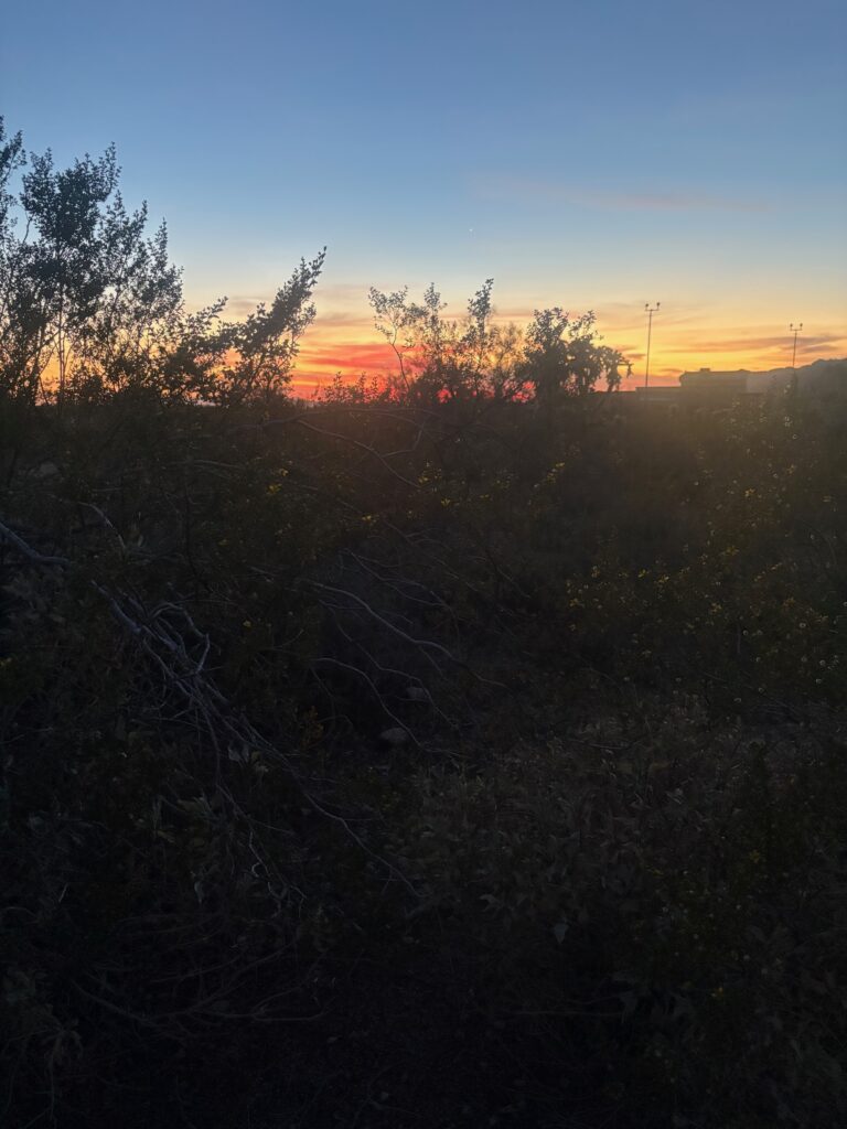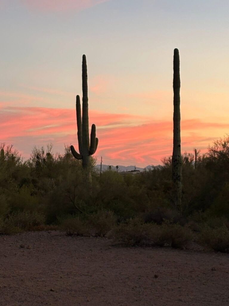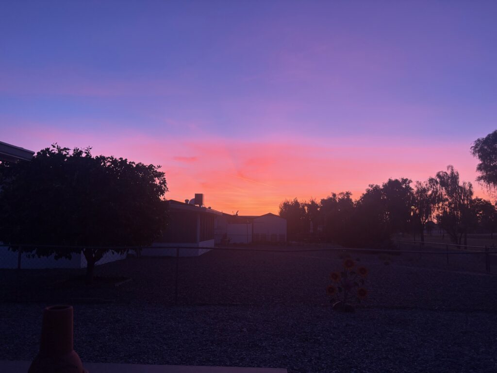 Over Thanksgiving, Sue and I sent a picture of the sunset at the same moment – she was at Usery and I was at home. I’ve been meaning to put this phenomenon in this blog. I have it in another one also at the time it happened, but look at these two sunsets taken at the same moment in different locations!