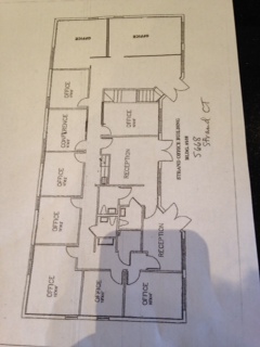 OK so now for some pretty exciting news. Yesterday I got a text at work from my Pastor and he wanted a “bunch” of us to go look at a building off of Immokkalee Road that is for sale. I’m thinking – sure would like to see a move closer to my area and this is way farther away than where we are now. So I said I’d like to come to see the building and we all swarmed the place at 4:30PM yesterday. Mind you, this is a church that last Sunday had 37 people in the congregation! So when 12 of us went to the place yesterday, that was a pretty good showing. ANYWAY, the place is located at 5668 Strand Court. It is a little enclave of individual office buildings. Lots of different businesses, but no “Sunday” traffic to speak of. So that is a positive. I made a “tactical” error and drove up Goodlette to Immokkalee and traveled down to Strand Blvd on Immokkalee. Bad traffic at that time so I wasn’t really happy about that. So after driving around a little I had to call Michael to get “walked in” and finally found the place. Another “issue”. So here is the current floor plan: